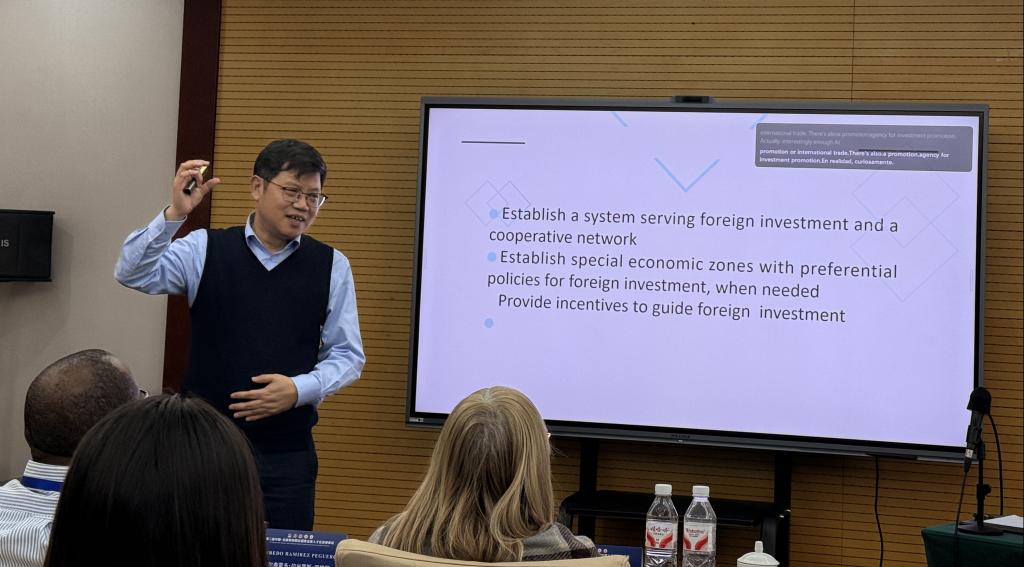 2025年11月6日下午,第二届中国—拉美和加勒比国家法律人才交流研修班继续在中国政法大学举行专题课程。中国政法大学涉外法治研究院院长孔庆江教授以“中国涉外法治建设与《外商投资法》解读”为题,为来自拉美和加勒比多国的学员作专题讲授,系统阐释了中国外商投资法律制度的历史演进、制度创新与实践经验。