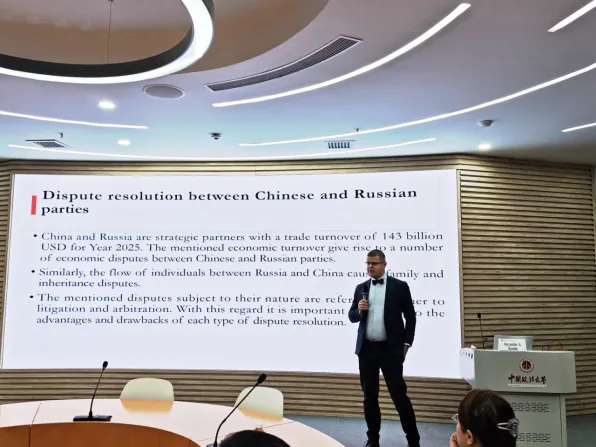 2025年10月24日,中国政法大学仲裁研究院、涉外法治研究院与《中国法律评论》研究中心联合成功举办了主题为“国际商事争端解决的现代化与中国仲裁法的最新进展”的专题讲座。讲座特邀俄罗斯总统下属私法研究中心研究员、莫斯科国立国际关系学院(MGIMO)副教授Alexander A. Kostin先生与中闻律师事务所合伙人乔焕然律师担任主讲,中国政法大学仲裁研究院秘书长李良担任主持人。